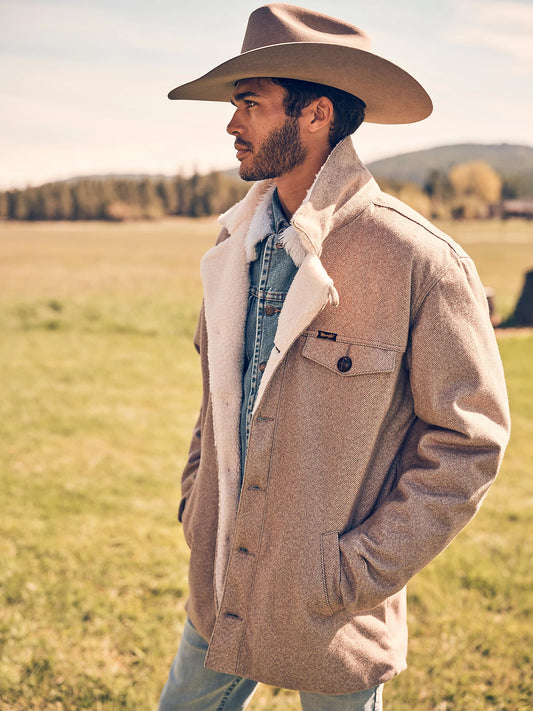 Wrangler Men's Tweed Sherpa Lined Heavy Jacket in Neutral Brown