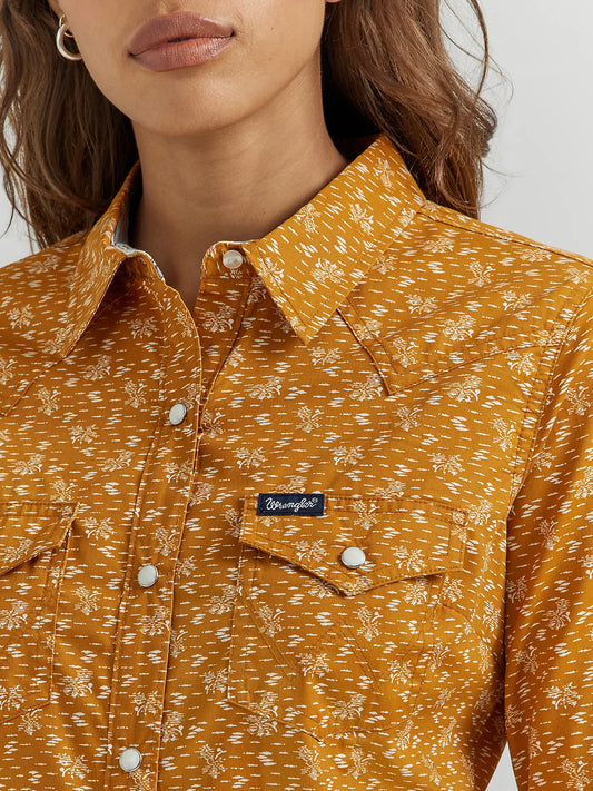 WOMEN'S WRANGLER ALL OCCASION WESTERN SNAP SHIRT IN MINI YELLOW