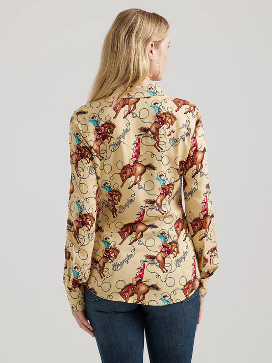 Women's Wrangler Bold Bucking Cowboy Western Snap Shirt in Birch