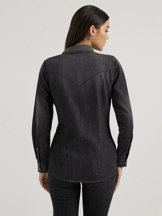 Women's Wrangler Denim Cowboy Snap Shirt in Black