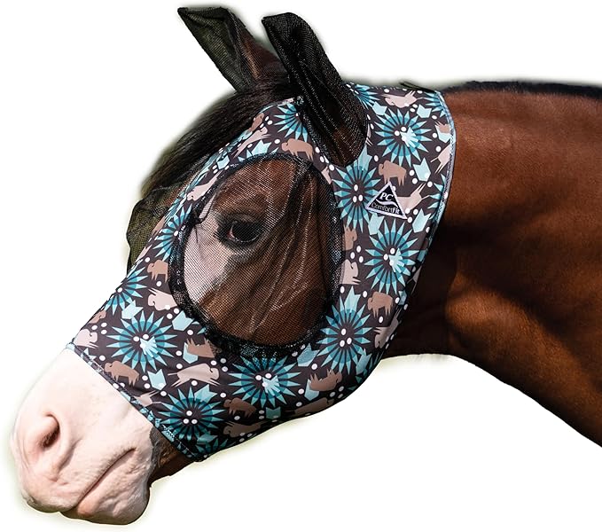Designed with your horse’s comfort in mind! Smooth, stretchy lycra with binding around the edges fits your horse’s face like a glove. Mesh around the eyes and ears allows for clear vision and keeps flies and bugs away. Forelock opening for improved fit.